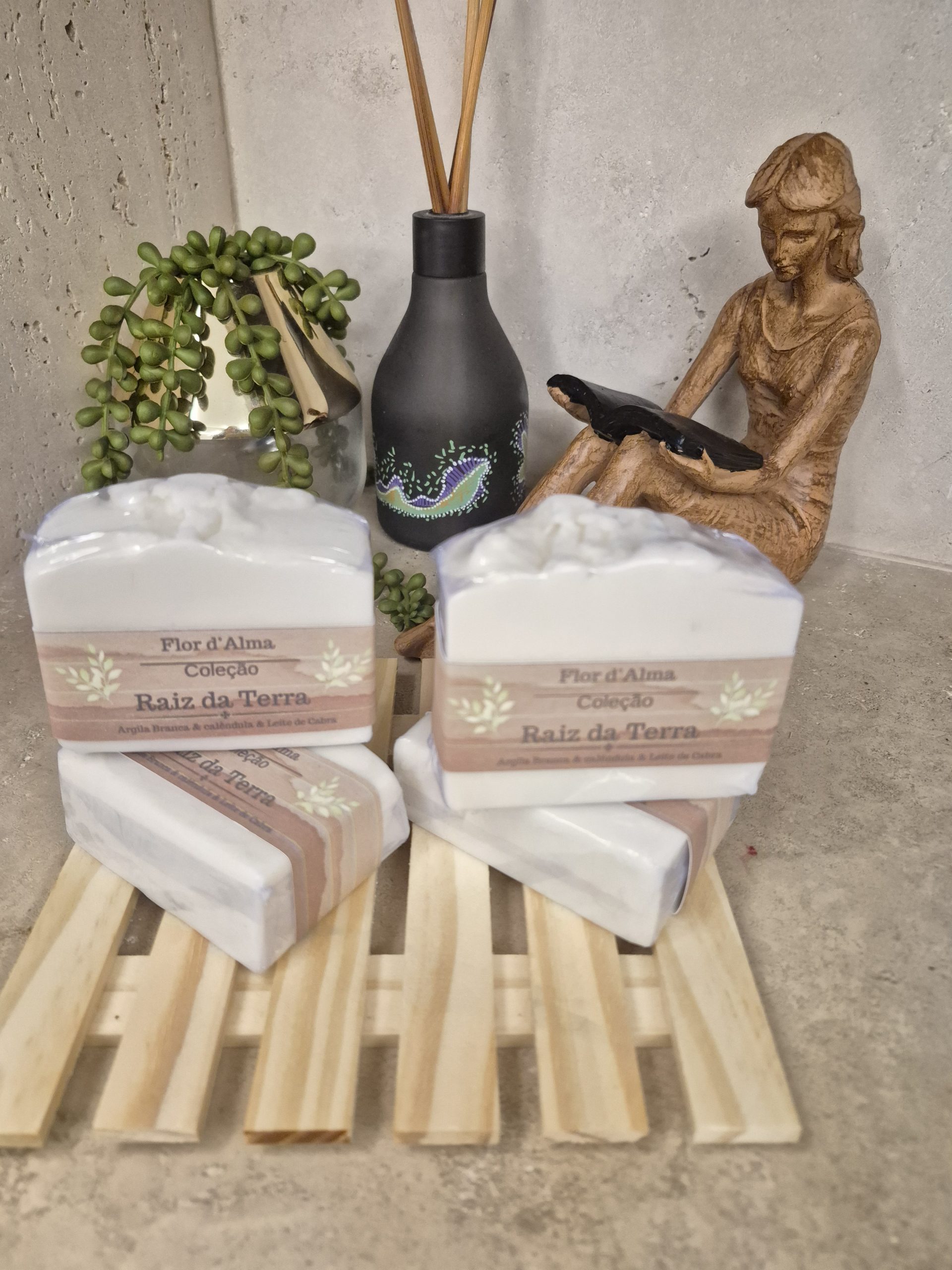 Sabonete artesanal de argila branca, calendula, leite de cabra e óleo de coco